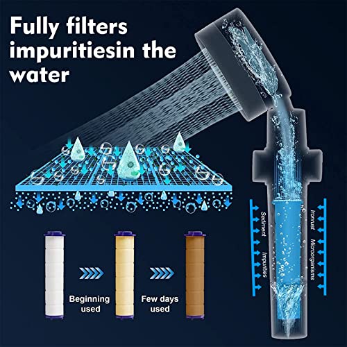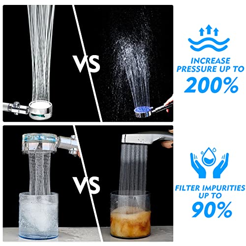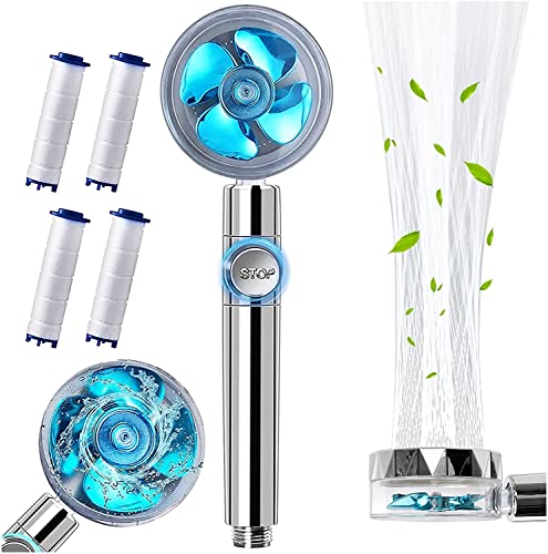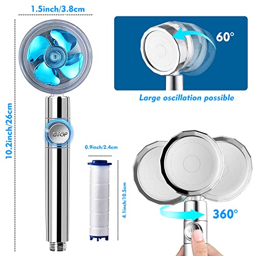 hywot - رأس دش بمروحة تربو محمول باليد بضغط عالي مع خرطوم إغلاق وفلتر حامل، دوار 360 درجة وموفر للمياه مناسب للتخييم (أزرق)