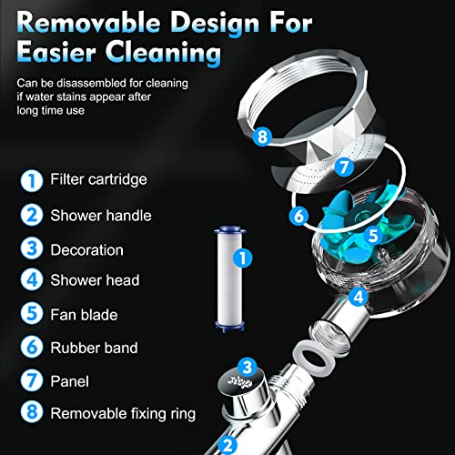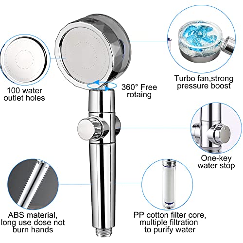 - 【رأس دش بمروحة يدوية】يدعم تصميم رأس الدش المزود بشاحن توربيني نفاث مائي قوية شكل تدفق مياه مميز، لتنظيف فقاعات الصابون المتبقية في ثوانٍ. لا حاجة لتنظيف البشرة بقوة وإتلافها للحصول على وقت استحمام ممتع.