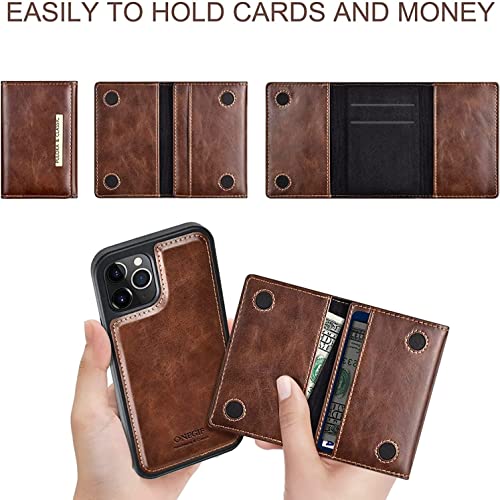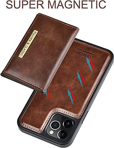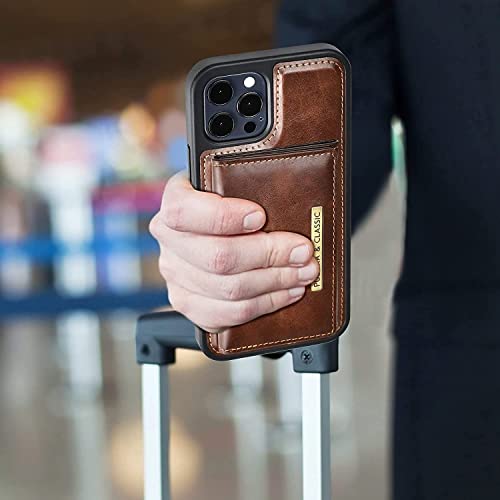 Generic - جراب جلد بمحفظة مغناطيسية قابلة للفصل تسع 5 بطاقات ائتمان يمكن استخدامها كمسند لموبايل ايفون 14 برو ماكس 6.7 بوصة من بولوكا بنى