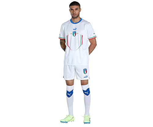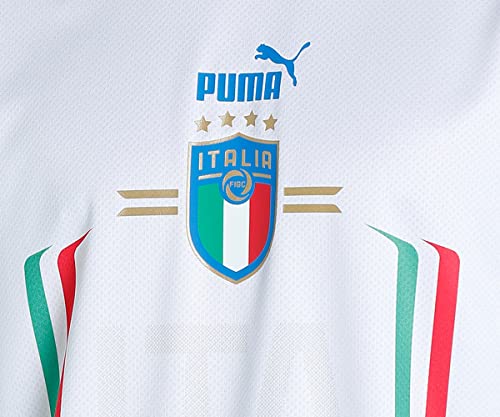 PUMA - تيشرت بقصة عادية مطبوع عليه حروف للرجال من بوما (76565002_أبيض-أزرق الترا، مقاس XL)