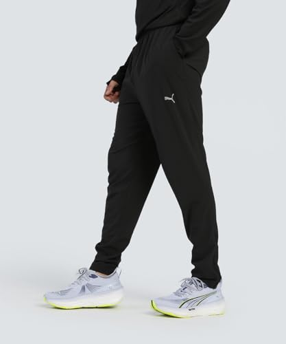 PUMA - بنطلون رياضي ام رن فيلوسيتي بقصة متدرجة الضيق من أعلى لأسفل من بوما، لون أسود
