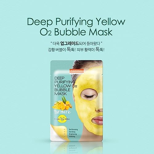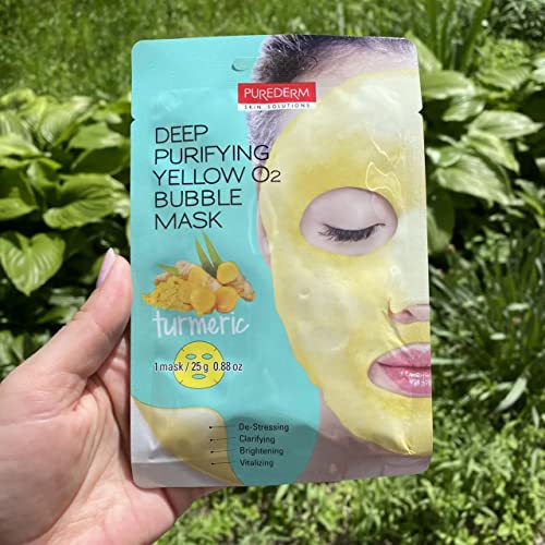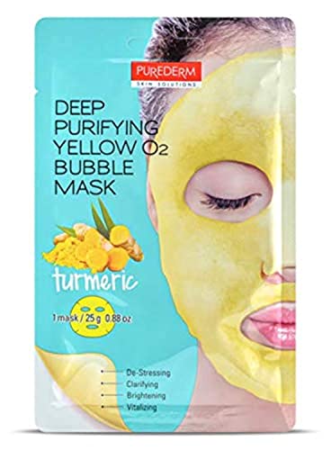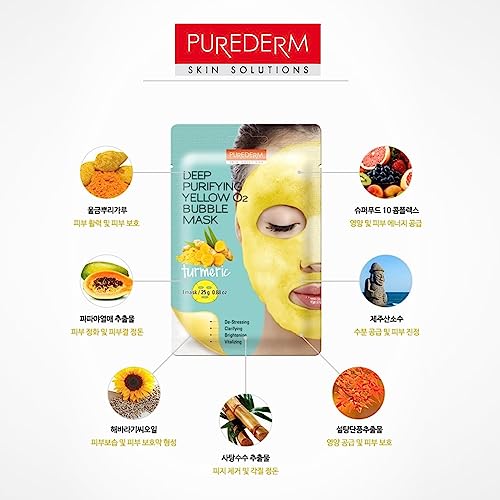 Purederm - قناع الوجه الاصفر بفقاعات الاكسجين لتنقية البشرة بخلاصة الكركم من بيورديرم - قناع واحد، لنوع البشرة كل الأنواعة
