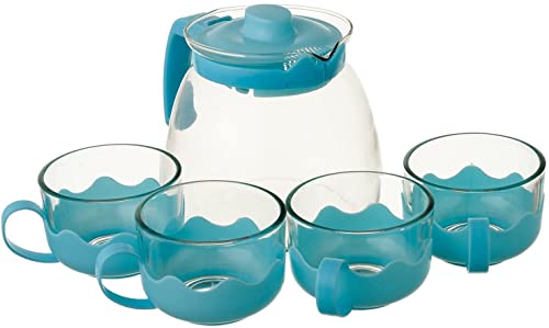 Pyrex - طقم تقديم من بايركس مكون من 5 قطع - ابريق بفلتر داخلي - 4 اكواب شاي