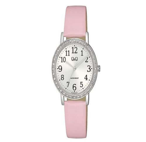 Q&Q WATCHES - Q&Q ساعة انالوج للنساء بسوار جلدي لون بينك Q32B-003PY بمينا الوردي