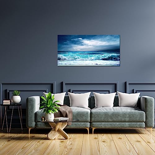 QBQT - لوحة فنية جدارية عصرية لغرفة النوم والمكتب من كيو بي تي القماش بتصميم بانورامي طبيعي للمحيط الازرق والبحر لديكور المنزل اطار كبير الحجم 20 × 40 انش منظر بحري متعدد الألوان