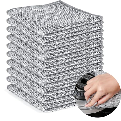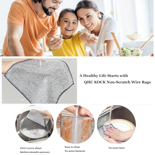 QHC KOCK - كيو اتش سي كوك قطعة قماش سلكية غير قابلة للخدش (فضي، 10 عبوات) متعددة الاغراض لغسل الاطباق للاستخدام الرطب والجاف