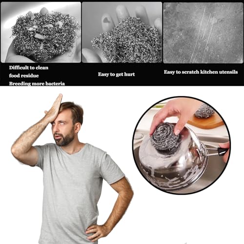 - 5 مقاس مثالي: 7.87 انش × 7.87 انش أكبر قليلاً من إسفنجة المطبخ. يستخدم تقنية نسج شبكية متطورة على شكل الماس ومواد أسلاك معدنية عالية الجودة، مما يجعل من السهل إزالة البقع الزيتية. لا تؤذي الوعاء واليد.