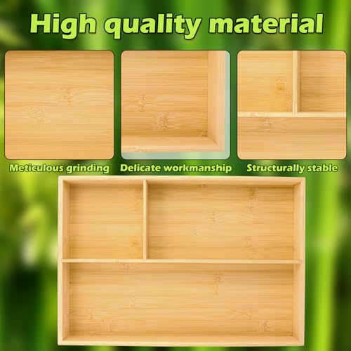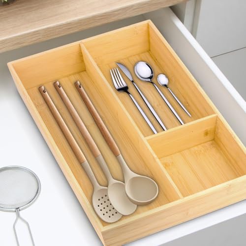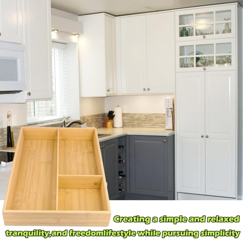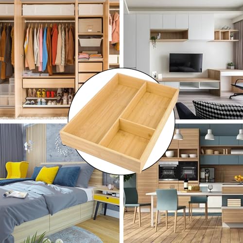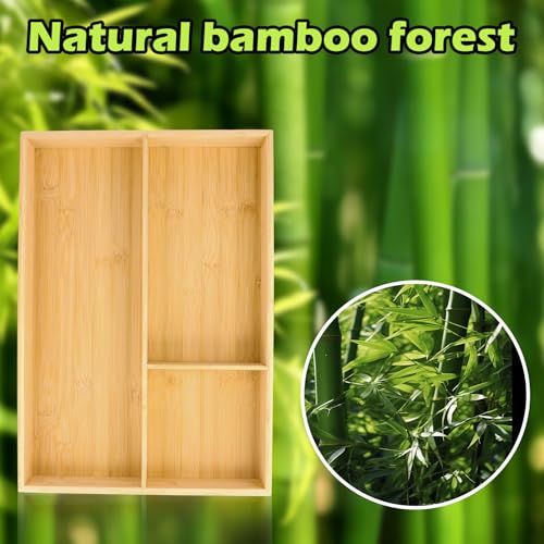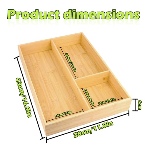 QINGZY - صينية أدوات مائدة للأدراج الخشب من كينجزي، منظم 3 أقسام لأدوات المائدة، صندوق أدوات مائدة من الخشب، فواصل لأدراج أدوات المائدة، صينية أدوات مائدة من الخيزران لأدراج المطبخ، مقاس 43 × 30 × 6 سم