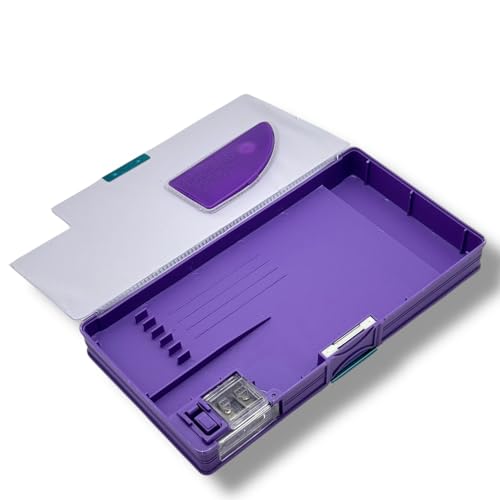 Qshop - مقلمة من كيوشوب®️ متعددة المهام بآلة حاسبة ومبراة – تحفظ الأدوات في ترتيب مثالي – اختيار ممتاز للمدرسة أو كهدية مميزة (Purple)