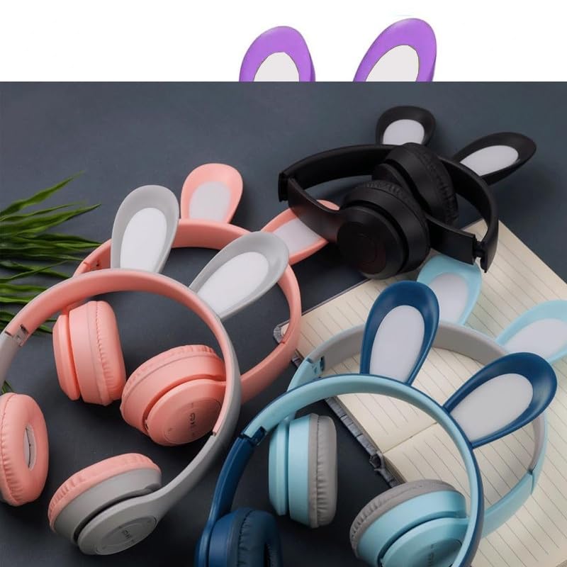 Generic - سماعات رأس بلوتوث لاسلكية Rabbit Ear B12 بتصميم لطيف وإضاءة LED متعددة الألوان مع ميكروفون ودعم بطاقة ذاكرة. (BLACK)
