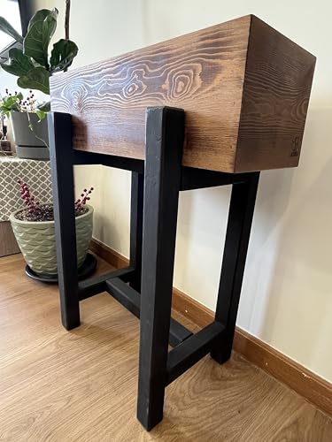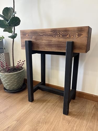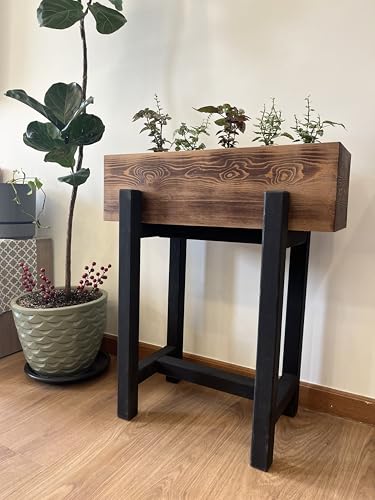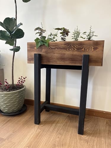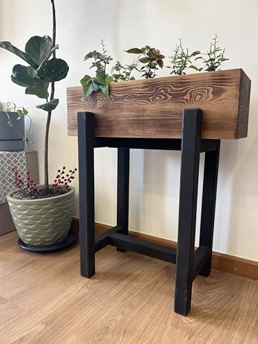 Generic - صندوق زراعة مرتفع، مصنوع من الخشب الطبيعي، مستطيل الشكل، بتصميم أسود وبني ثنائي اللون