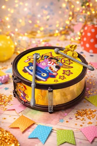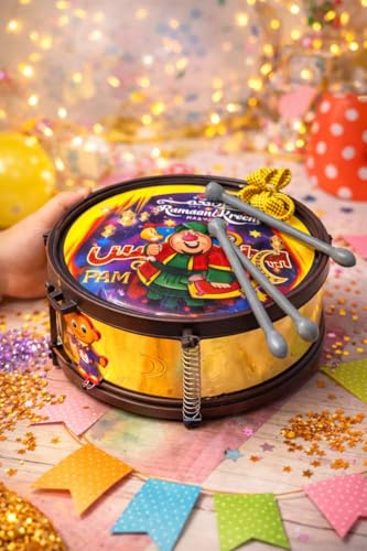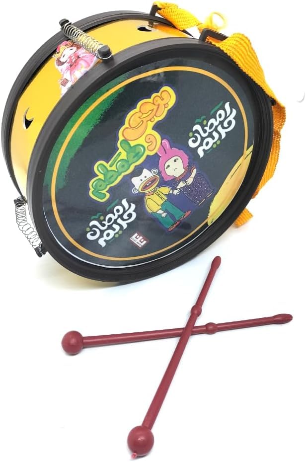 Generic - طبلة رمضان - طبلة ذات وجهين + 2 عصا + حزام. مجموعة العاب للاطفال مع 2 عصا وحزام تعليق للاطفال الصغار. متعددة الاشكال.