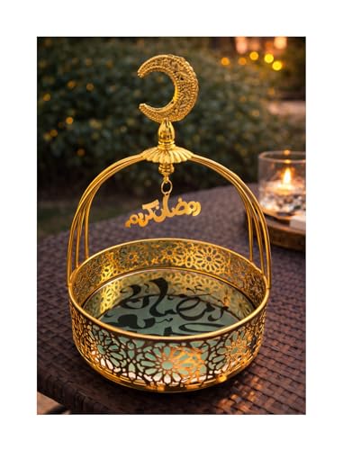 Generic - حامل ضيافة رمضاني بتصميم هلال وزخارف شرقية، ذهبي، مع عبارة رمضان كريم، ديكور طاولة للمجالس والسفرة