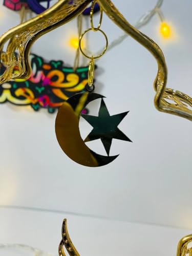 Generic - مبخرة رمضانية معدنية ذهبية مع غطاء وتعليقة هلال ونجمة، 16×25 سم لأجواء رمضان المميزة