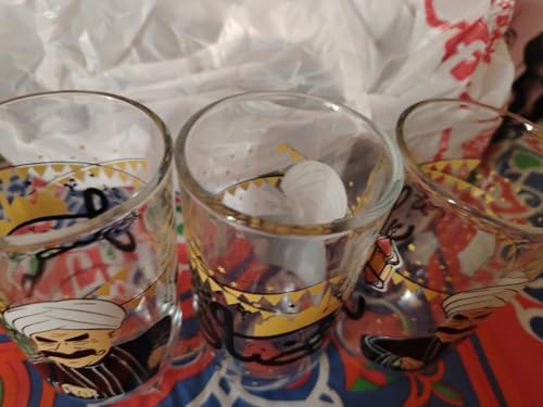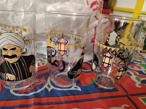 Generic - طقم 3 أكواب عصير زجاجية بتصميم شخصيات رمضان كريم، نقوش عربية احتفالية
