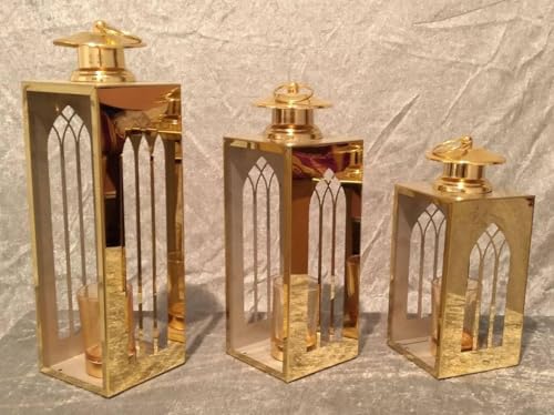 Generic - رمضان كريم بتنورفوانيس رمضان 3 قطع ذهبية من الفولاذ المقاوم للصدأ بتصميم خط عربي من عنخ هوم سابلايز،واحجام مختلفة انيقة للغاية ملائمة لديكور رمضان،مقاسات 35 × 30 × 25 سم،