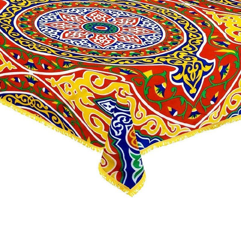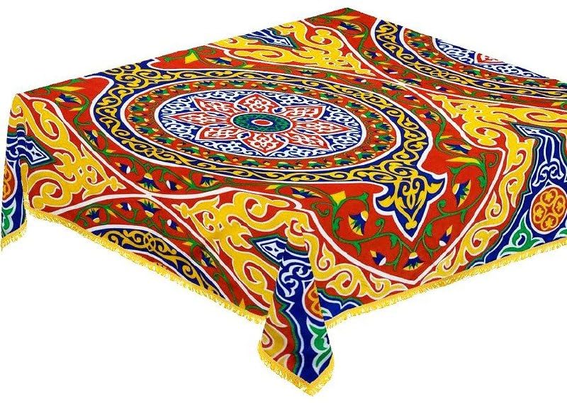 Generic - مفرش رمضان خيامي من القماش، تصميم رمضاني مميز، مقاس 1.5 × 1.5 متر، مناسب لسفرة الإفطار والديكور المنزلي R