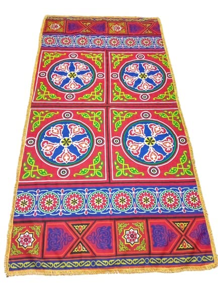 LC - مفرش طاولة بتصميم خيامية رمضان بلون أحمر، مقاس 1.20، 2.40 م