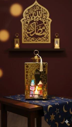 - الأبعاد والمواد: ارتفاع 30 سم، قطر 12 سم، عرض 10 سم، مصنوع من معدن وزجاج وبلاستيك آمن، وزن 100 جرام، مثالي كهدية رمضانية للعائلة والأصدقاء