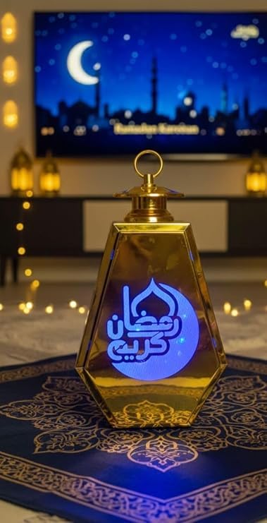 Generic - فانوس رمضان سداسي ارتفاع 35 سم مع إضاءة LED وأغنية رمضان , موسم رمضان بلون دهبى