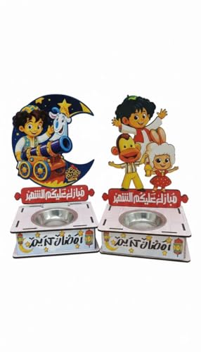 DIY-Kit - مبخرة خشبية رمضان - مبخرة خشبية رمضانية - اشكال رمضانية كرتونية متعددة (عشوائية) - مناسبة لديكور المنزل في شهر رمضان - حامل بخور - من ضمن الاشكال بكار نانوفس - موديل 3