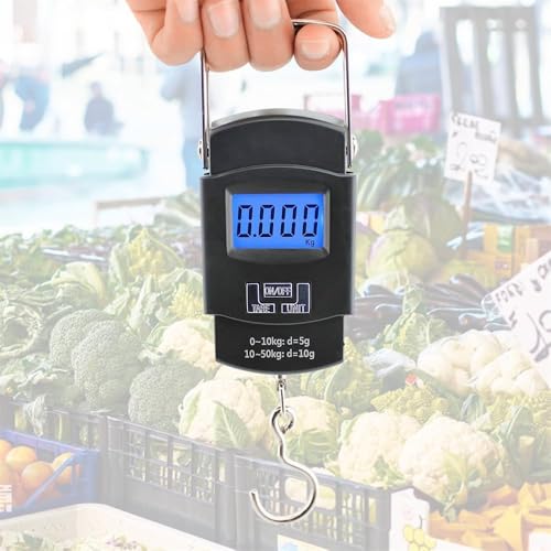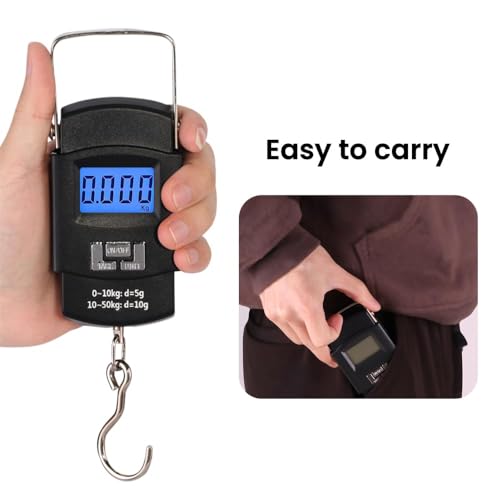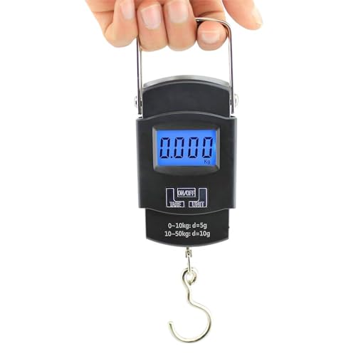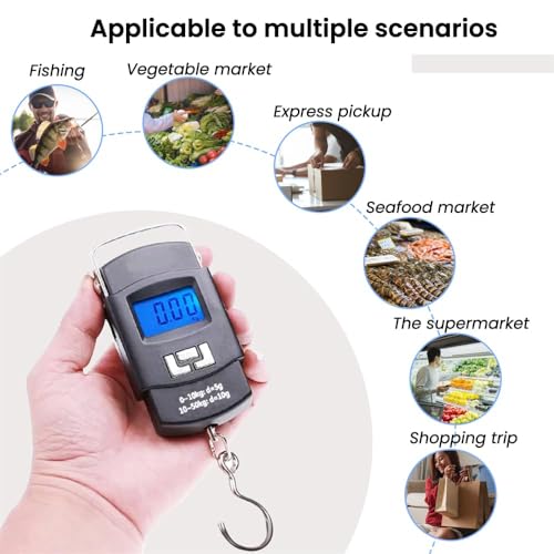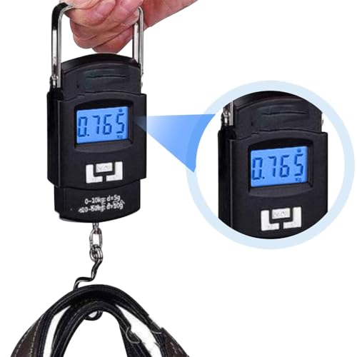 - مصنوعة من مادة متينة، شاشة إضاءة خلفية LCD كبيرة، خطاف معدني قوي ومقبض معدني مريح. توفر متانة قوية لتحمل الوزن الثقيل للأمتعة ووزن الأسماك.
