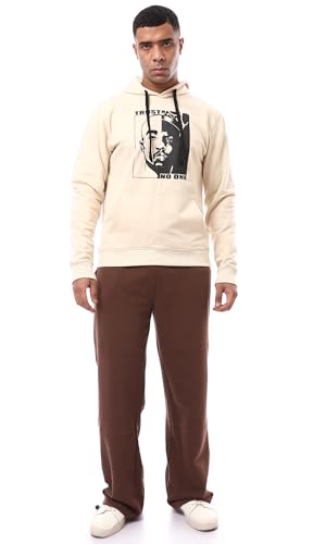 Ravin - سويت شيرت هودي بغطاء للرأس سهل الارتداء بطباعة أمامية للرجال من ريفين، لون بيج
