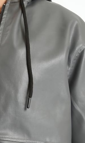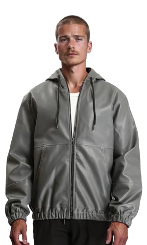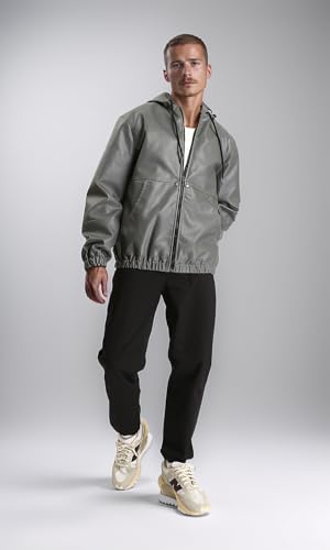 Ravin - ريفين جاكيت جلد برباط ورقبة بغطاء للرأس للرجال - رمادي داكن - R213542 (عبوة من قطعة واحدة)