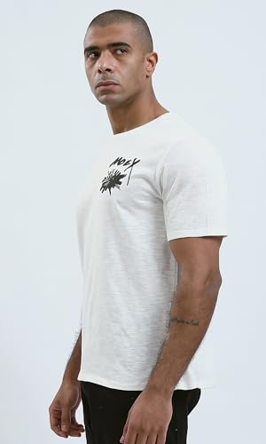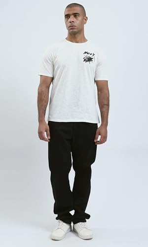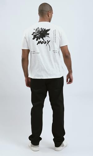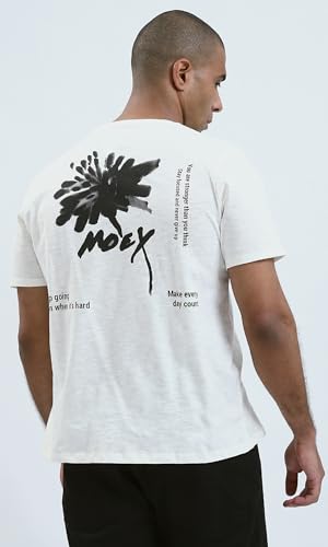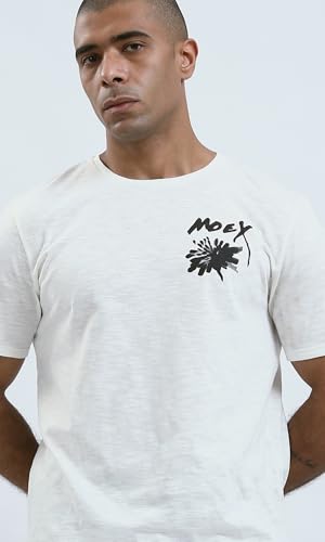 Ravin - تيشرت رجالي من ريفين عصري مريح مطبوع عليه "Moey" بلون اوف وايت