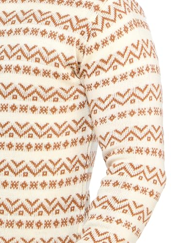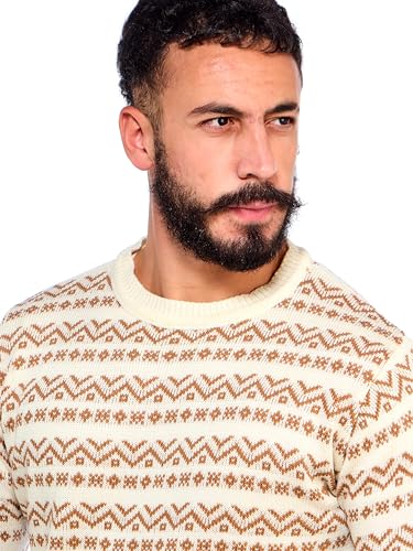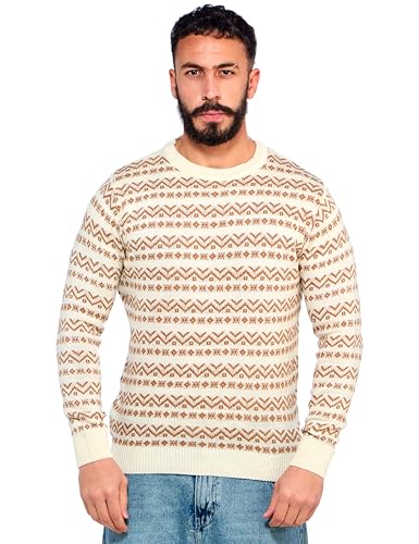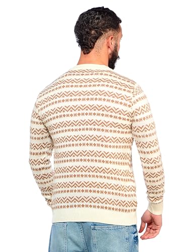 Ravin - ريفين بلوفر رجالي منقوش بقصة عادية ورقبة دائرية ضيقة - بلوفر بيج للرجال
