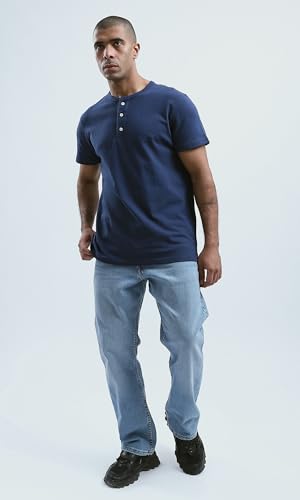 Ravin - قميص هينلي عصري بأكمام قصيرة وأزرار للرجال من ريفين؛ بلون كحلي داكن