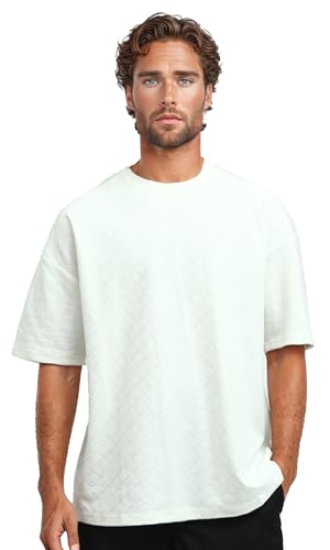 Ravin - تيشرت قطن سليب أون سهل الارتداء بنقشة ذاتية للرجال من ريفين - أبيض عصري
