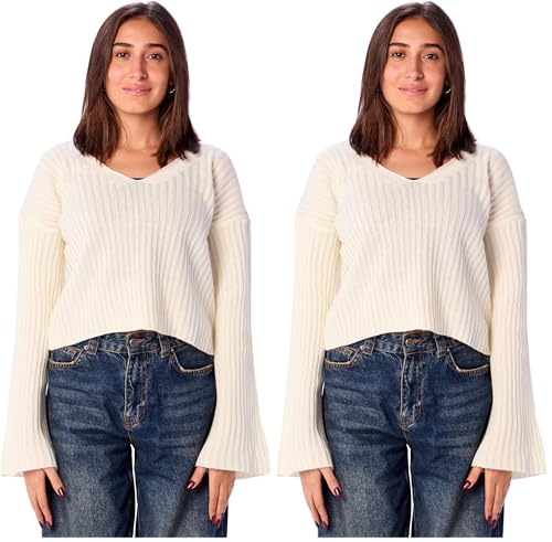 Ravin - بلوفر قصير سهل الارتداء بلون اوف وايت للنساء من ريفين، أبيض، مقاس سمول S (عبوة من 2 قطعة)