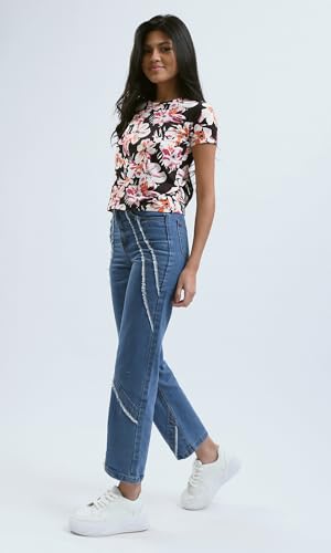 Ravin - تيشرت صيفي برقبة دائرية ضيقة مزين بالزهور الملونة للنساء من ريفين، متعدد الألوان - حديث