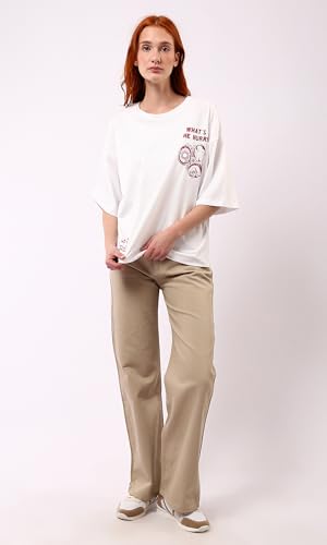 Ravin - ريفين تي شيرت قطن عصري بقصة فضفاضة وقبة دائرية ضيقة مطبوع للنساء