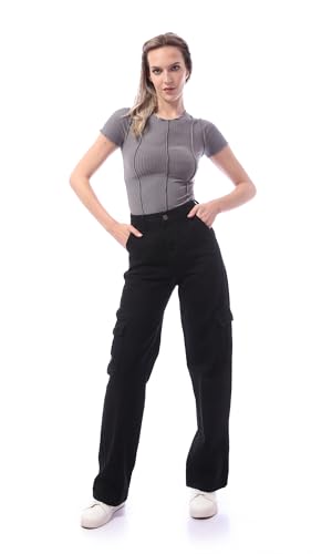 Ravin - ريفين تي شيرت قصير سهل الارتداء برقبة دائرية للنساء بلون رمادي غامق