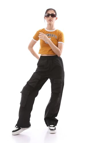 Ravin - ريفين تي شيرت قصير عصري برقبة دائرية مطبوع بلون برتقالي غامق للنساء
