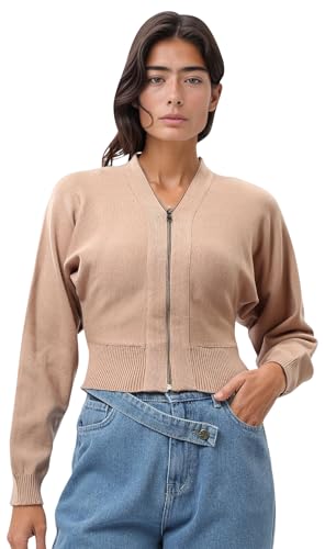 Ravin - ريفين جاكيت قصير بسوستة ورقبة على شكل حرف V للنساء - كارديجان بيج نود