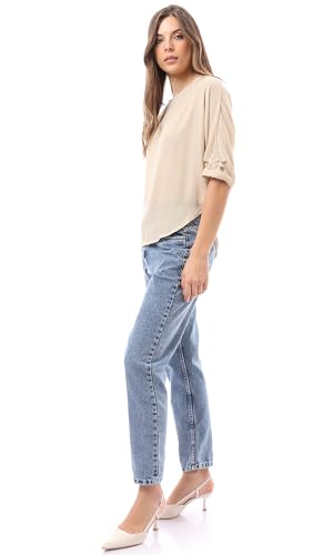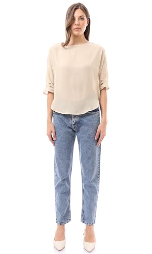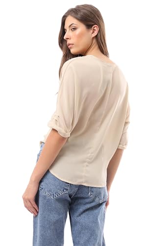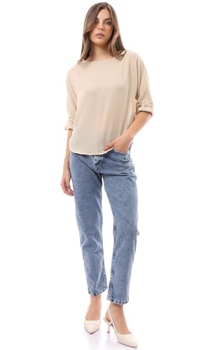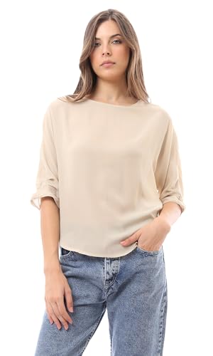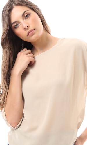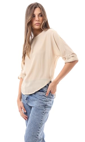 Ravin - بلوزة شفافة برقبة واسعة سهلة الارتداء للنساء من ريفين، بيج