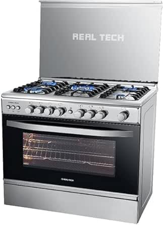 Generic - بوتاجاز غاز 90 سم مع مروحة فرن موديل 900602 من ريل تيك، 5 شعلات، فولاذ مقاوم للصدأ