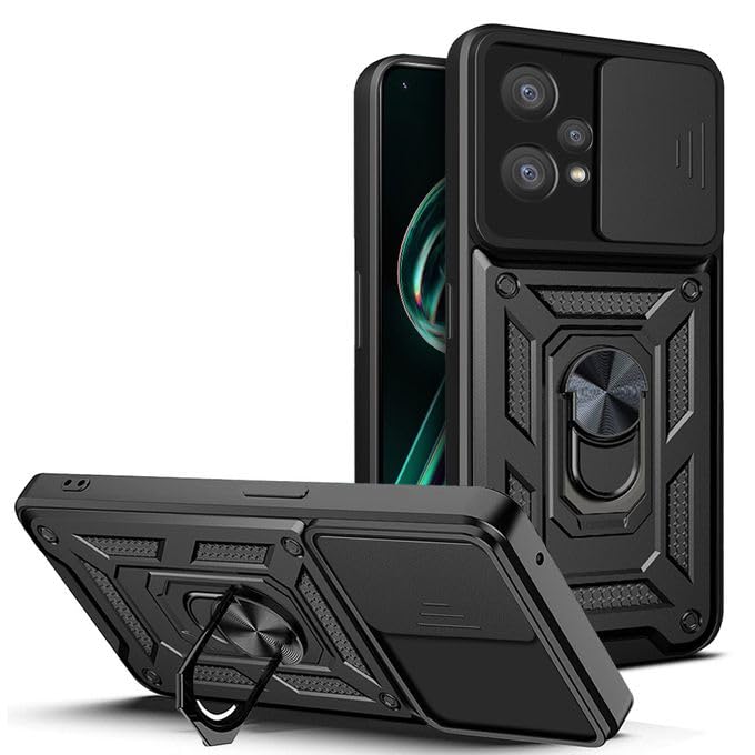 Generic - جراب حماية ريلمي 9 برو بلس حماية كاملة من أقوى الصدمات مع غطاء كاميرا منزلق وحلقة معدنية (ريلمي 9 برو بلس) (اسود)