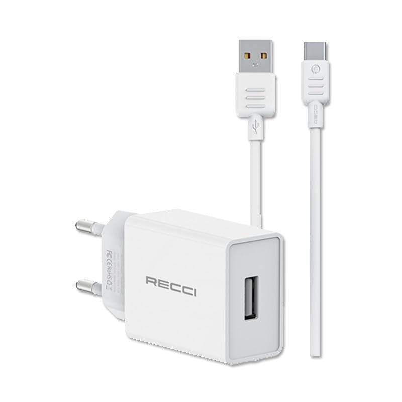 Recci, - طقم شاحن 2 امبير مع كابل USB إلى نوع سي بطول 1 م موديل RC58EC من ريتشي، لون أبيض