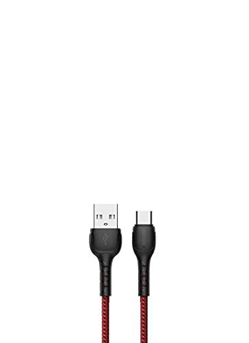 RECCI - كابل شحن ونقل بيانات من ريكسي كيبل مظفر الشكل يصعب كسره منفذ توصيل النوع سي يدعم الشحن السريع 3 امبير 100 سم موديل RTC-N16C أحمر لمحول