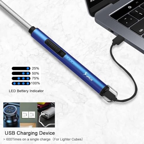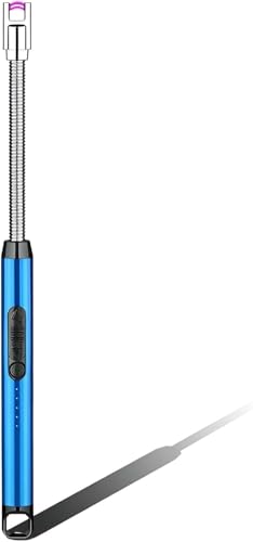 Generic - ولاعة شموع كهربائية قابلة لاعادة الشحن، هيكل من الستانلس ستيل وخطاف تعليق لون ازرق.