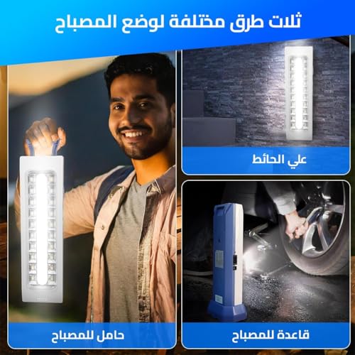 - إضاءة متعددة الاستخدامات: بفضل لمبات ليد الساطعة، يوفر مصباح الطوارئ هذا إضاءة فعالة في مختلف الحالات.