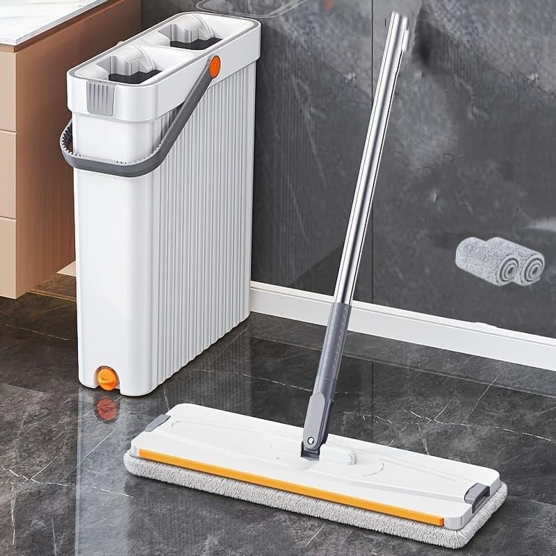 - نظام تنظيف متطور: ممسحة أرضيات مسطحة مع دلو مستطيل مزود بفتحتين منفصلتين لتصفية المياه المتسخة والنظيفة لضمان تنظيف فعال وصحي