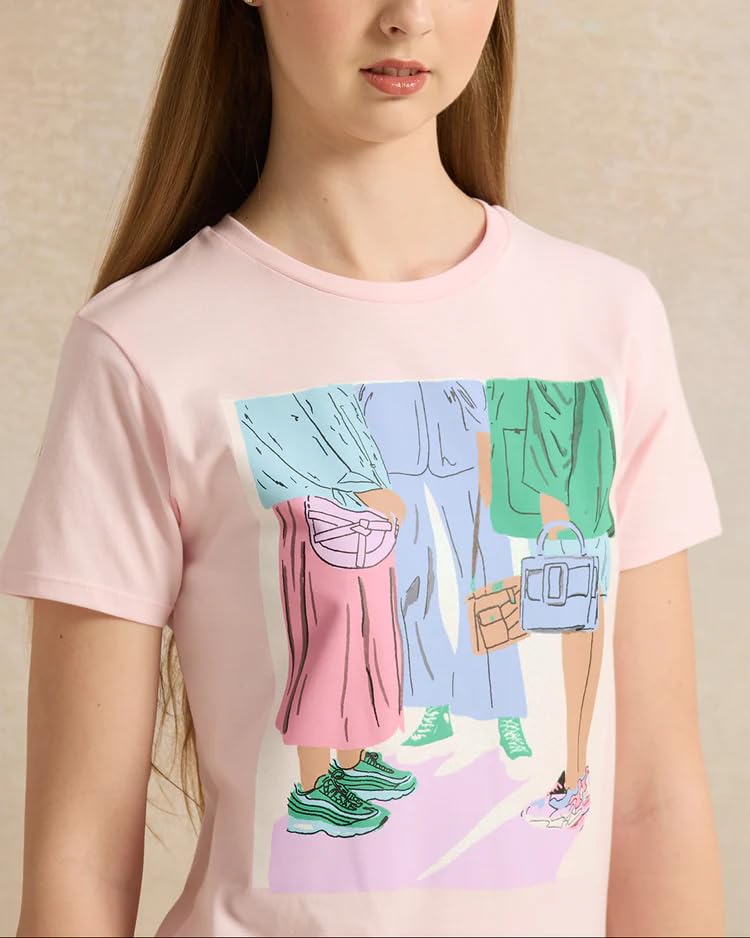 Generic - تيشرت مطبوع للبنات الكبار من ريدتاج، لون بينك