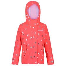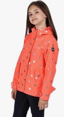 Generic - جاكيت مقاوم للماء للبنات من ريجاتا، لون مرجاني مع طباعة، معطف مطر بغطاء راس
