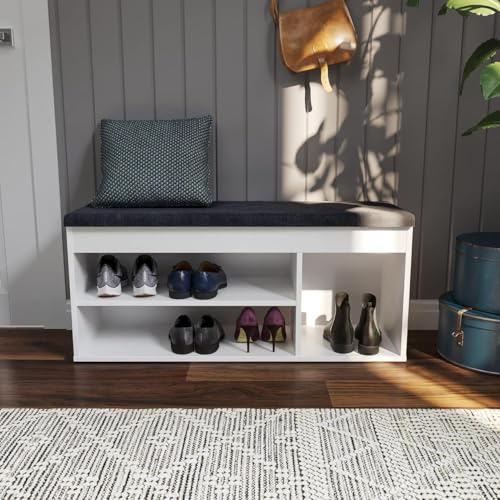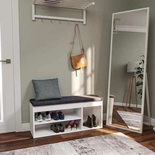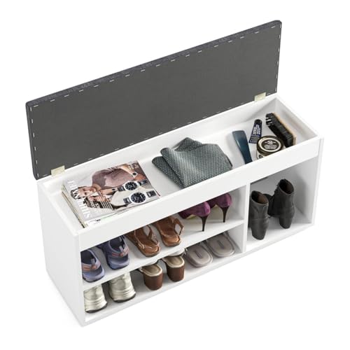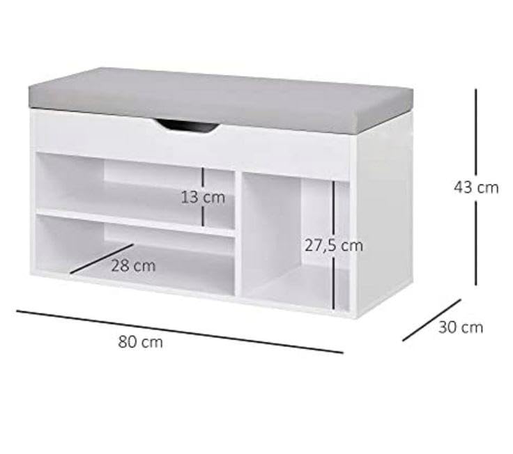 Reioo - مقعد تخزين احذية مع وسادة من ريو، رفوف من طبقتين، 80 سم، ابيض ورمادي
