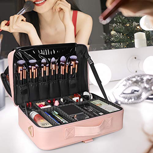 Relavel - حقيبة سفر لمستحضرات التجميل لتنظيم مستحضرات التجميل وحقيبة تخزين متنقلة للفنانين مع فواصل قابلة للتعديل لمستحضرات التجميل فرش المكياج وادوات الزينة والاكسسوارات الرقمية